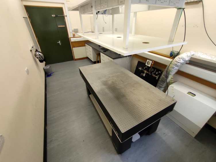 - 27 July 2022 – Upgrades! Second optical table installed in the new lab courtesy of the crew at Redbourn Express Services. Slow but steady progress in this space so far as we gear up to expand research operations into cryogenically-cooled rare earth ions and quantum dots.