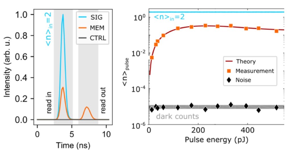 An approach we’ve pioneered is to move away from a Lambda configuration and toward a ladder one, utilising the Off-Resonant Cascaded Absorption (ORCA) protocol. The key benefit of ORCA is the ladder scheme itself – an arrangement with significant wavelength separation between signal and control leads to the elimination of control field induced scattering or fluorescence noise inherent in Lambda schemes. Combined with high-quality low-loss interference filters for suppression of the control pulse leakage allows ORCA to perform at the highest signal to noise ratio demonstrated and store single photons without altering the quantum features of it. The ladder configuration also allows flexibility in choice of transition, opening up compatibility with semiconductor quantum dot sources, and as a further application, the ORCA memory interaction is capable of coherent filtering of temporal-spectral noise associated with quantum dot sources.